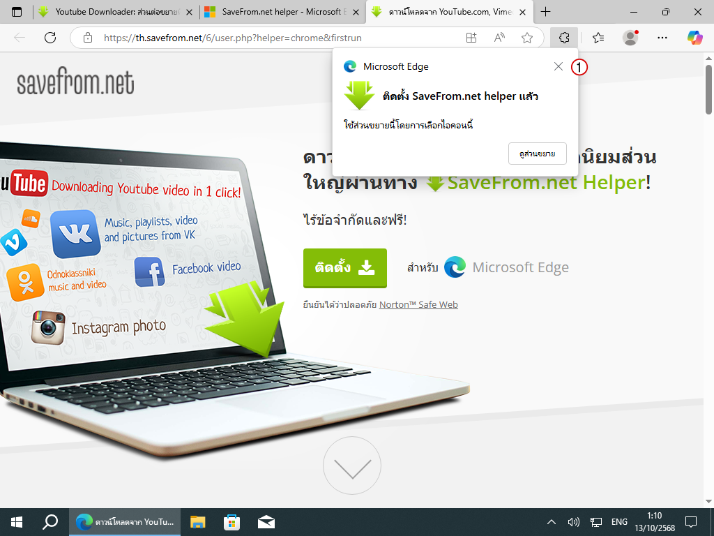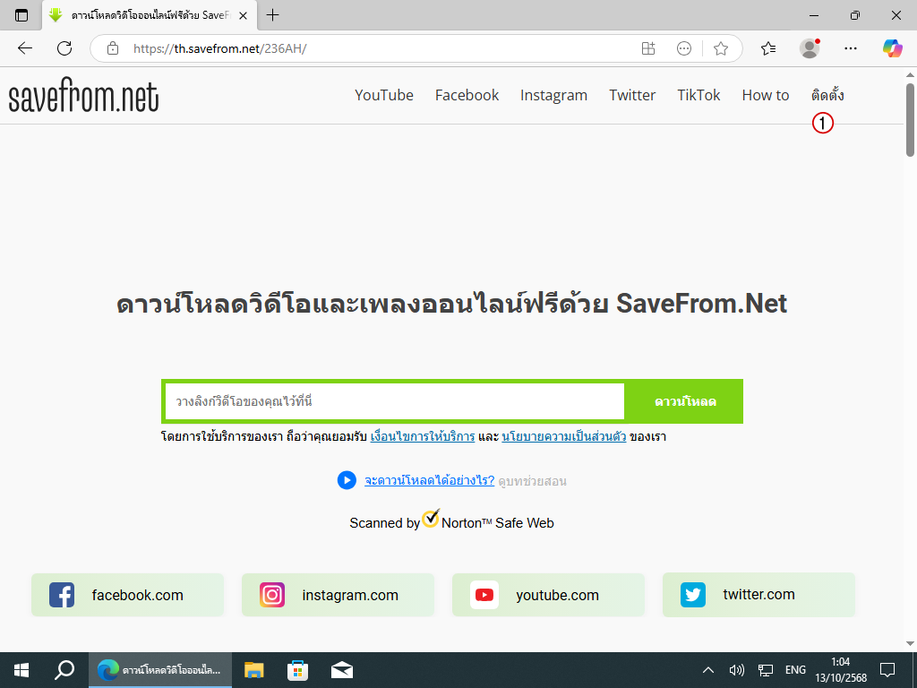 1. เริ่มต้นด้วยการเปิด Microsoft Edge แล้วเข้าเว็บ Savefrom.net