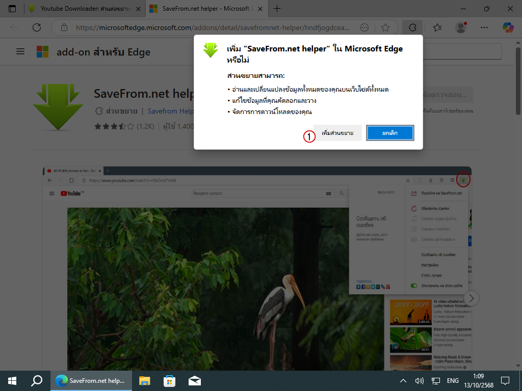 4. เวลาเราจะติดตั้งส่วนขยายลงใน Microsoft Edge มันจะเด้งหน้าต่างยืนยันความต้องการ