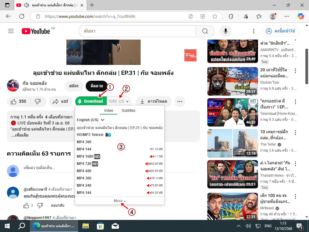6.1 ปุ่มสีเขียว กดปุ๊บดาวน์โหลดปั๊บ แต่ไม่แน่ใจว่าดาวน์โหลดได้อะไร แต่ส่วนใหญ่ได้ความละเอียดสูงสุดและเสียงคมชัดสุด